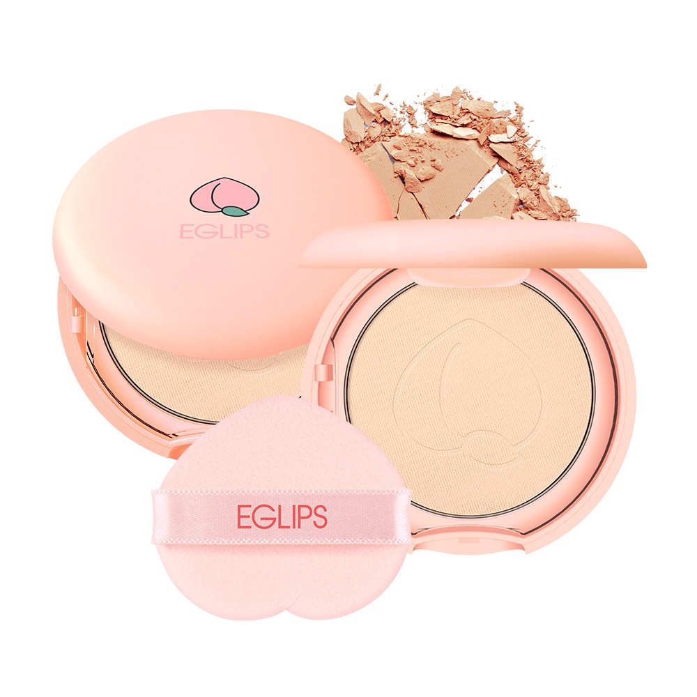 【EGLIPS】小蜜桃化妝袋 小蜜桃極細粉持久提亮粉餅 2色 (限定)