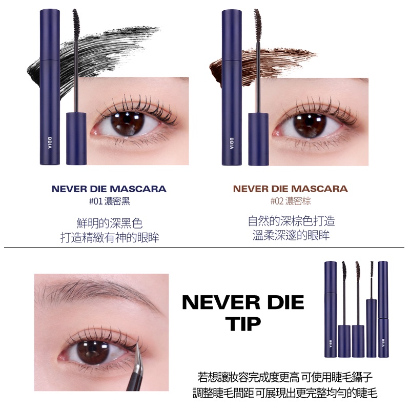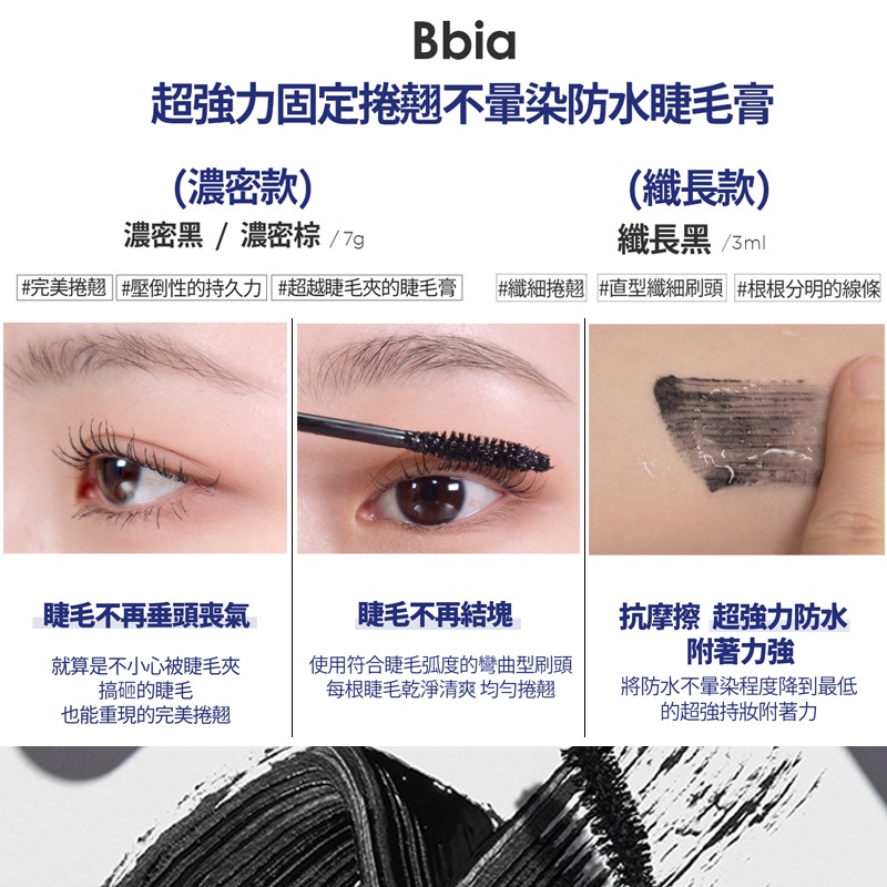 【Bbia 碧娥】新款 超強力固定捲翹不暈染防水睫毛膏3色 濃密款 纖長款 睫毛膏