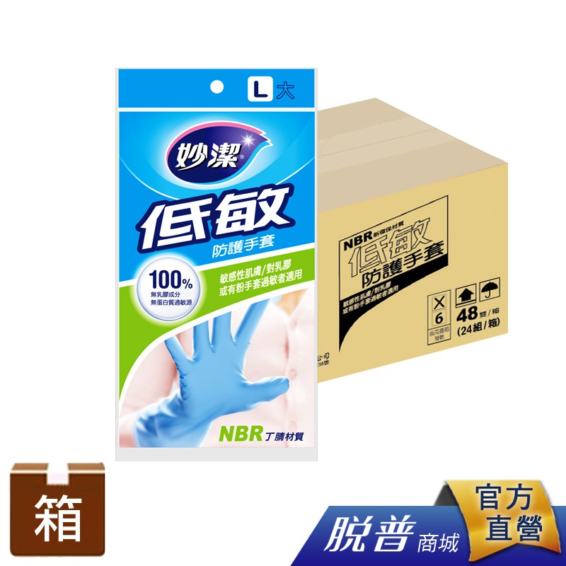 箱購-妙潔 低敏防護手套L-(48包/箱)【一筆訂單總量僅限一箱無法合包】