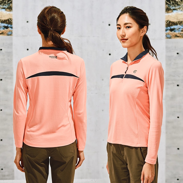 ADISI 女半門襟涼感智能纖維速乾長袖上衣AL2111138 豆沙粉 / 吸濕排汗 快乾 單向導濕 涼感 排汗衣