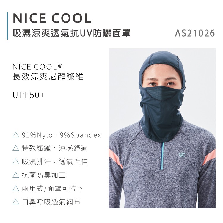 ADISI NICE COOL吸濕涼爽透氣抗UV防曬面罩 【深藍】 UPF50+ 救災 防災 AS21026