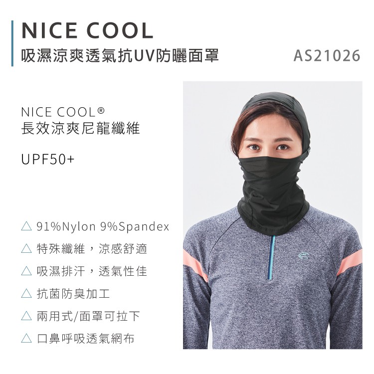 ADISI NICECOOL吸濕涼爽透氣抗UV防曬面罩 【黑色】UPF50+ 救災 防災 AS21026