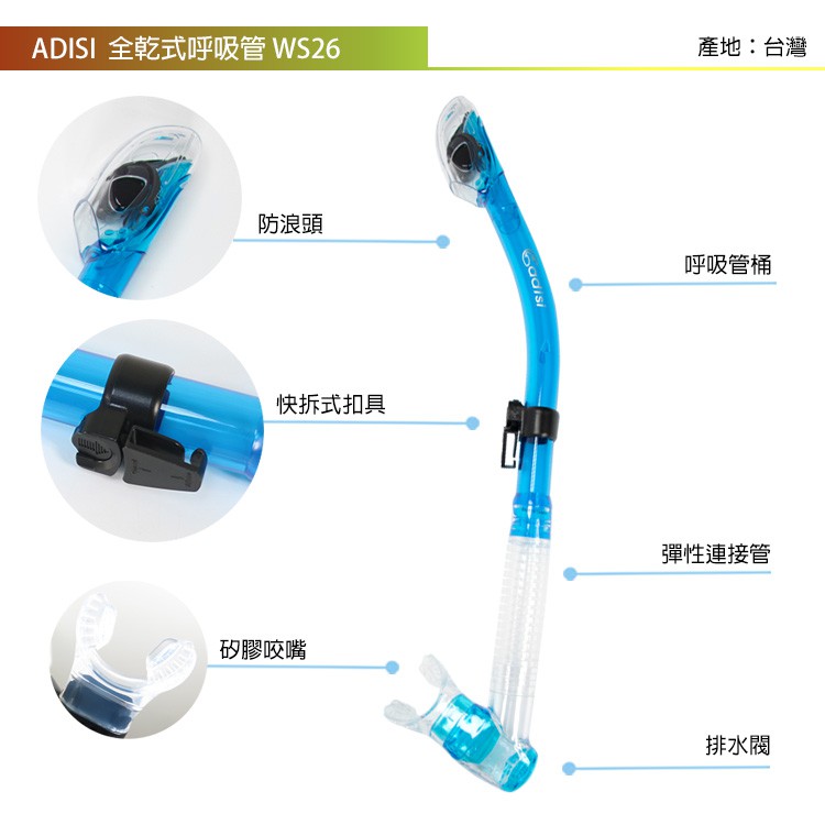 ADISI 全乾式呼吸管 WS26 8 浮潛,岸潛,海邊