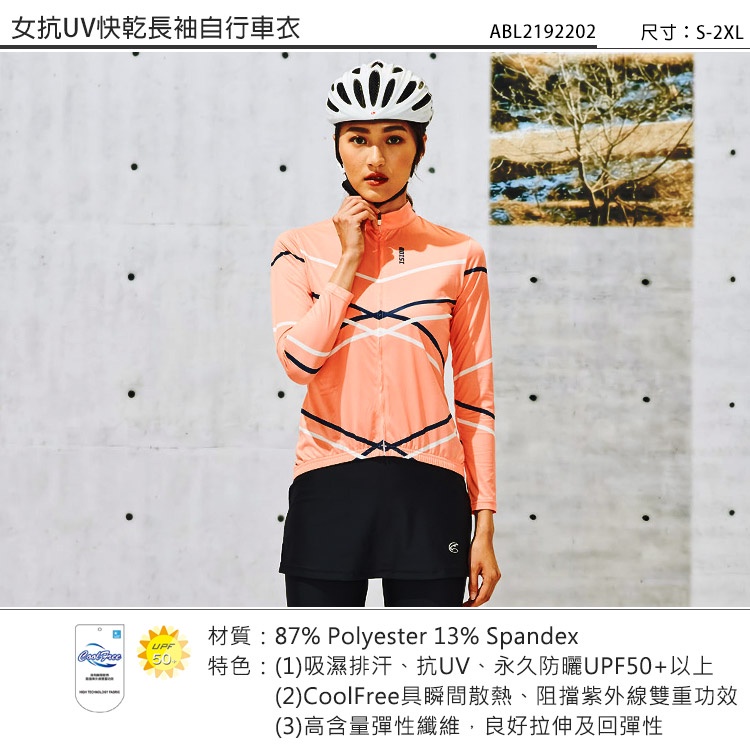 ADISI 女抗UV快乾長袖自行車衣ABL2192202 (S-2XL) 碧藍 / 吸濕排汗 速乾 防曬 反光