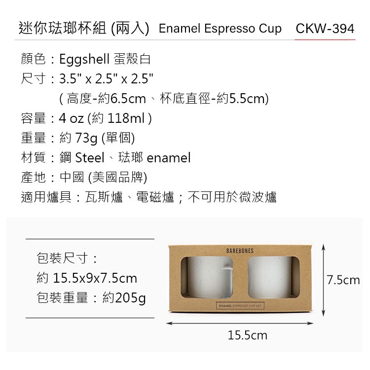 Barebones CKW-394 迷你琺瑯杯組 (4oz) 蛋殼白 Enamel Espresso Cup / 馬克杯