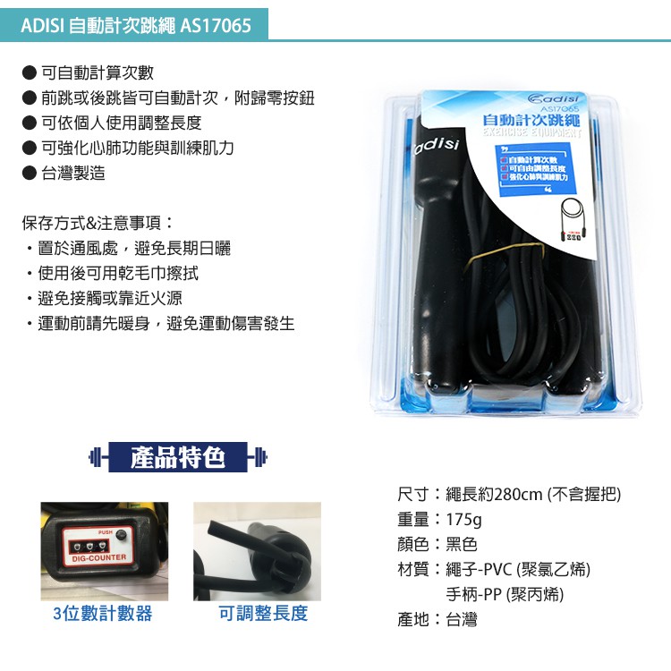 ADISI 自動計次跳繩 AS17065 / 燃脂 有氧 城市綠洲