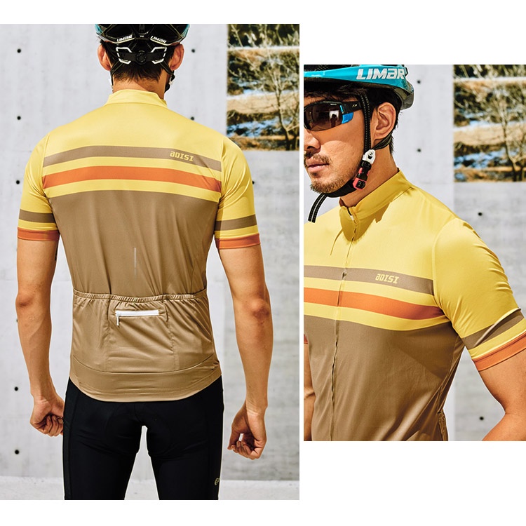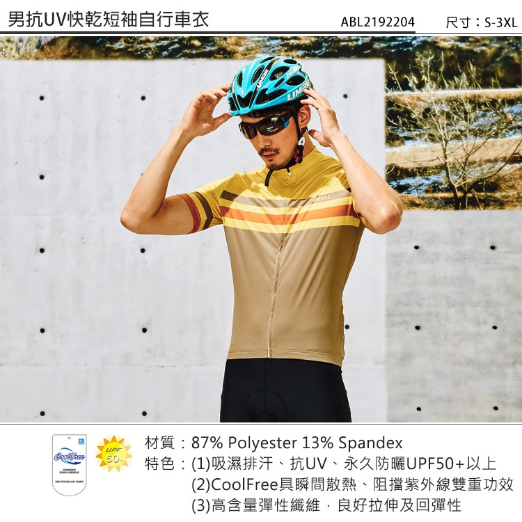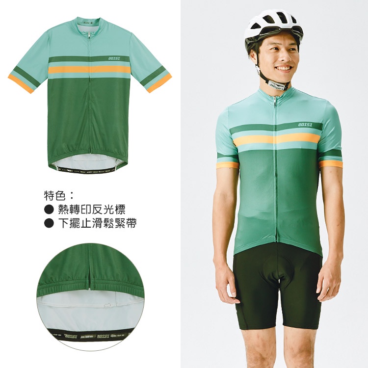 ADISI 男抗UV快乾短袖自行車衣ABL2192204 (S-2XL) 灰綠色 / 吸濕排汗 速乾 防曬 反光