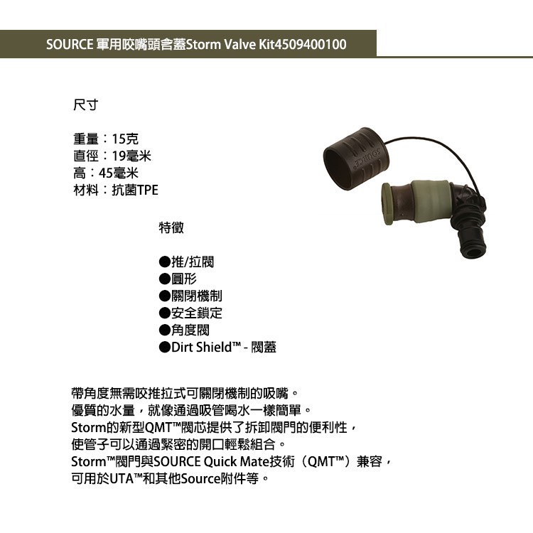 SOURCE 軍用咬嘴閥含蓋 Storm Valve Kit 4509400100 城市綠洲