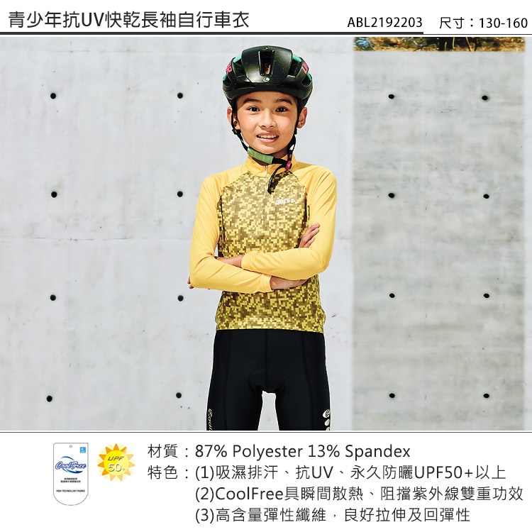 ADISI 青少年抗UV快乾長袖自行車衣ABL2192203 (130-160) 海軍藍 / 吸濕排汗 速乾 防曬