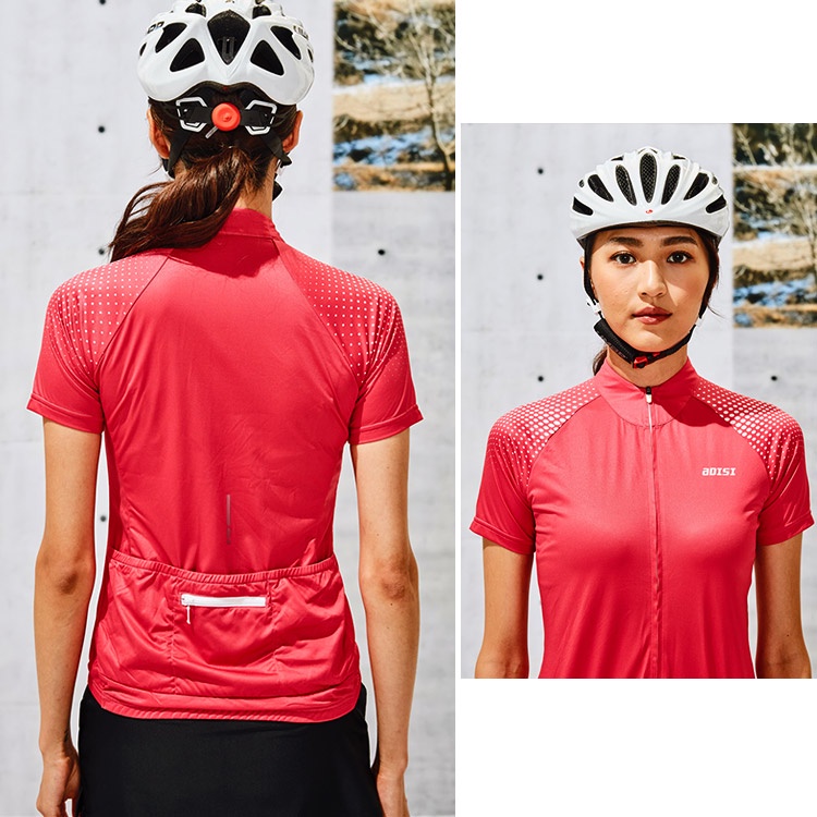 ADISI 女抗UV快乾短袖自行車衣ABL2192206 (S-XL) 熱情洋紅 / 吸濕排汗 速乾 防曬 反光