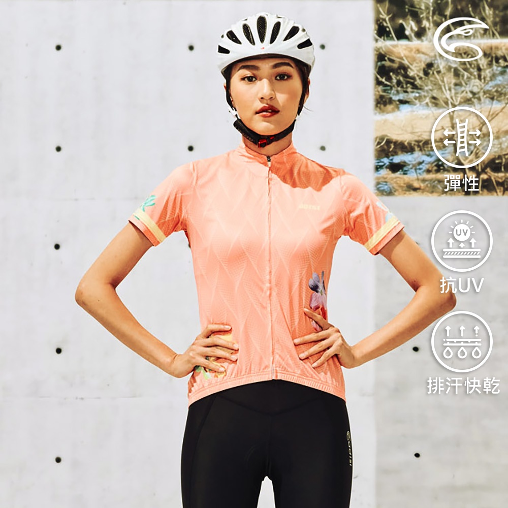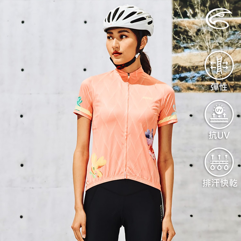 ADISI 女抗UV快乾短袖自行車衣ABL2192207 (S-XL) 春日粉橘 / 吸濕排汗 速乾 防曬 反光