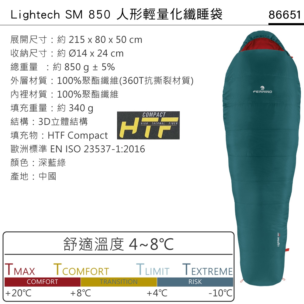 Ferrino Lightech SM 850 人形輕量化纖睡袋【深藍綠】86651 / 露營睡袋 登山睡袋