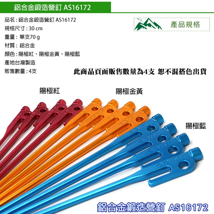 ADISI 鋁合金鍛造營釘 【30cm|一組四入】 AS16172 城市綠洲