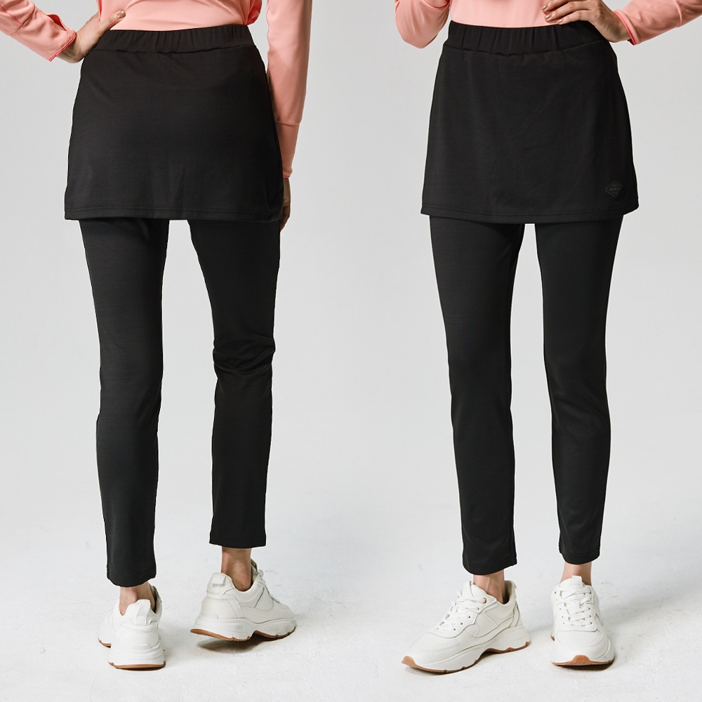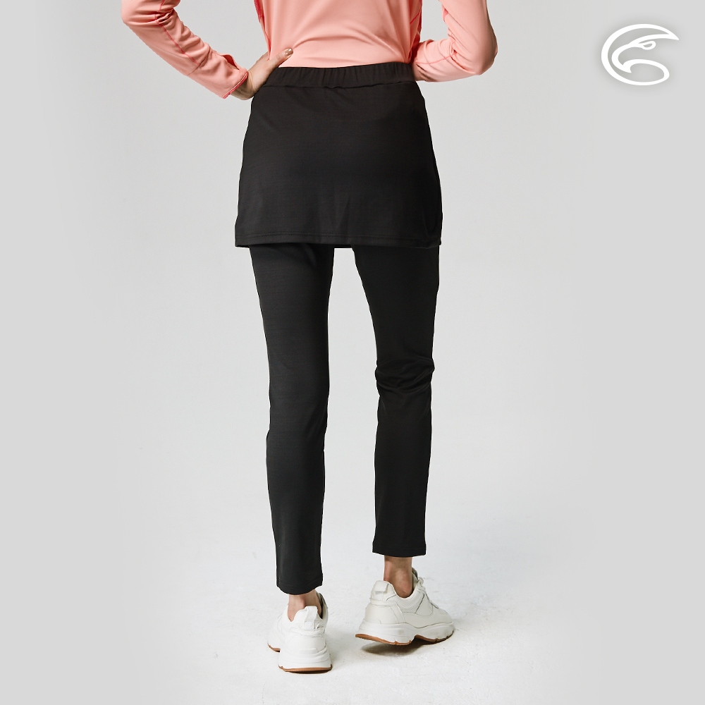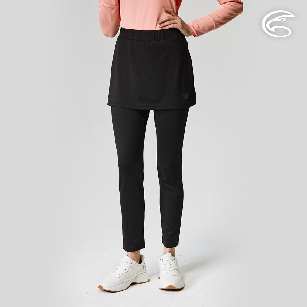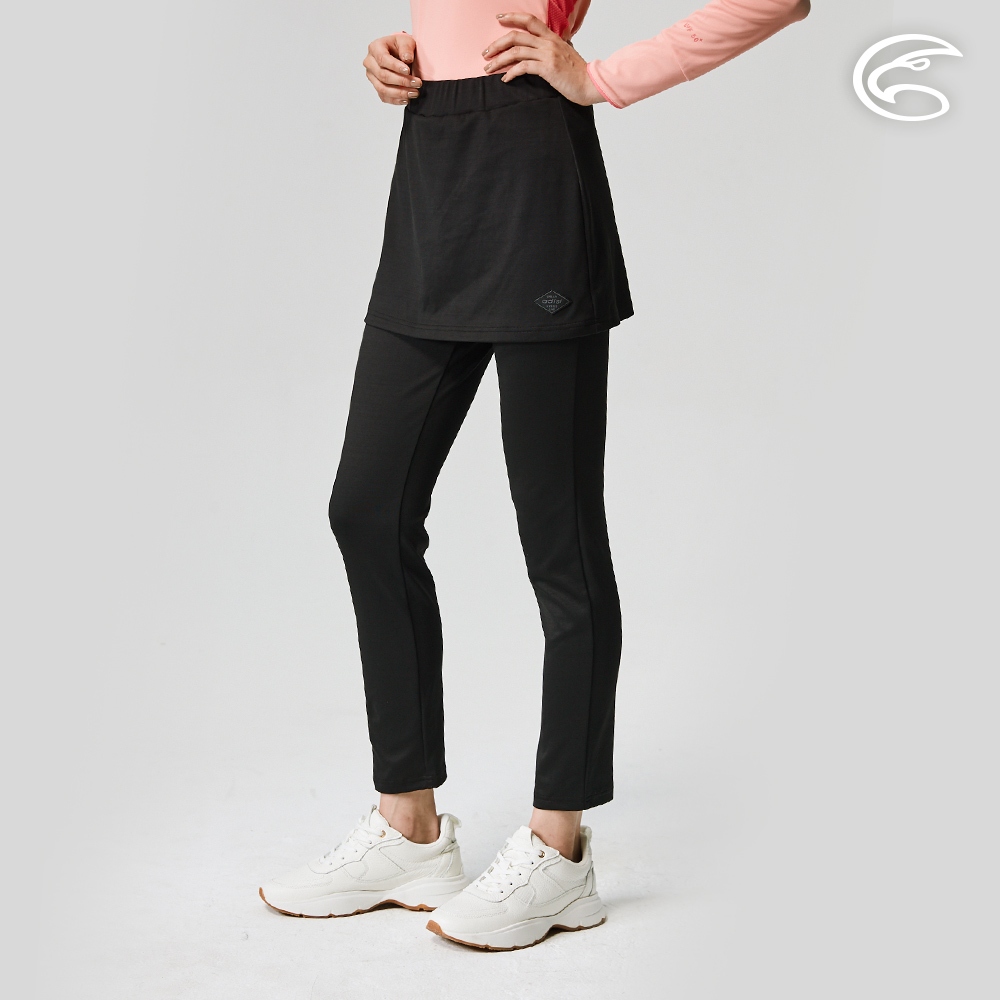 ADISI 女針織彈性快乾連裙修飾褲AP2221003 黑色|三季褲 吸濕排汗 快乾 速乾 四面彈 四向彈 裙褲 長褲