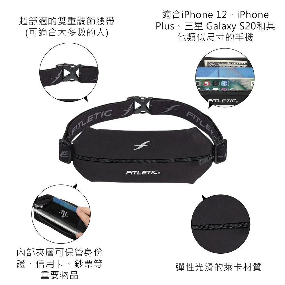 Fitletic Mini Sport Belt運動腰包MSB01 黑色|反光 跑步 路跑 慢跑 夜光 馬拉松