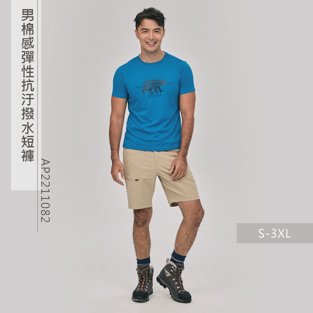 ADISI 男棉感彈性抗汙撥水短褲AP2211082 (S-2XL) 碳灰|防潑水 輕量 排汗快乾 透氣 機能 休閒