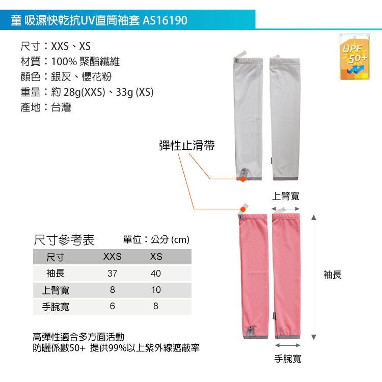 ADISI 童吸濕快乾抗UV直筒袖套 AS16190 (XXS~XS) 救災 防災