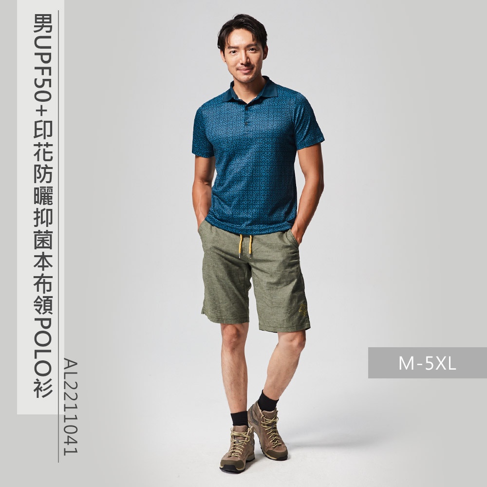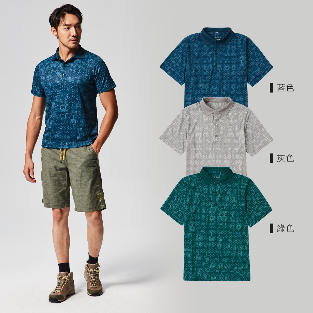 ADISI 男UPF50+印花防曬抑菌本布領POLO衫AL2211041 灰色|吸排 彈性 抗紫外線 抗菌 防臭