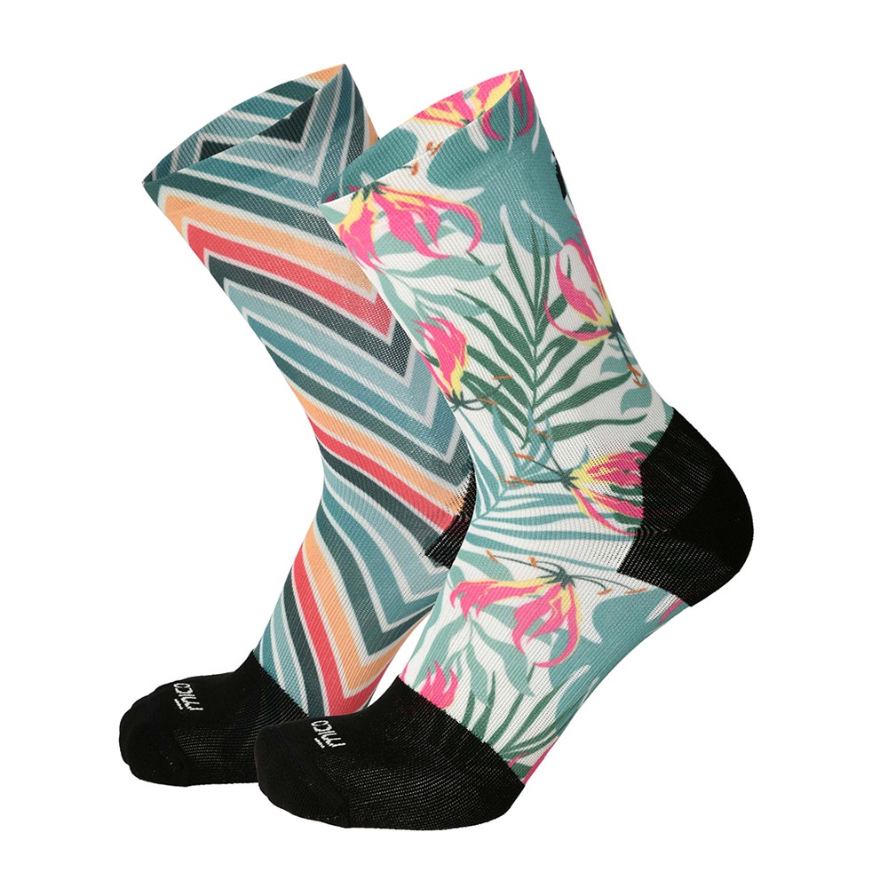 Mico 不對稱印花輕量中筒自行車襪 CA1340 / 953-VAR 3 (綠) / 登山車 公路車 折疊車 腳踏車