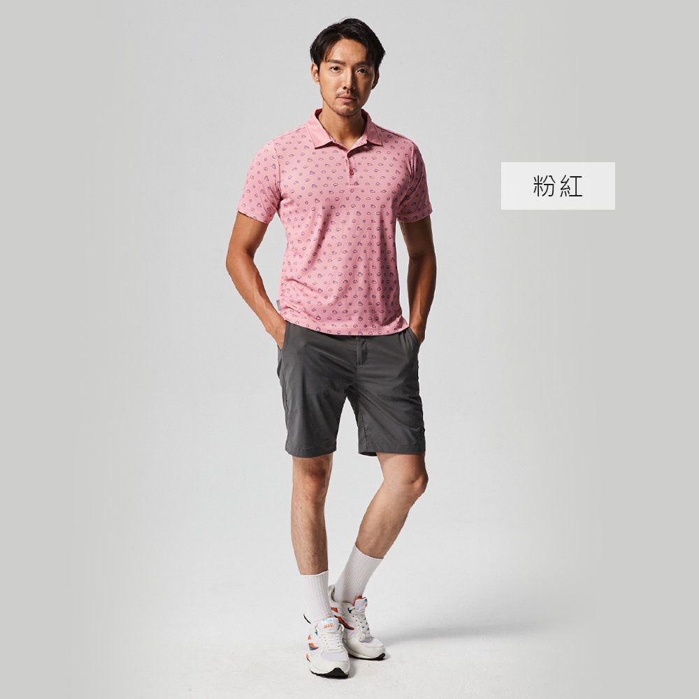 ADISI 男UPF50+印花防曬抑菌POLO衫AL2211042 粉紅|吸排 彈性 抗紫外線 抗菌 防臭