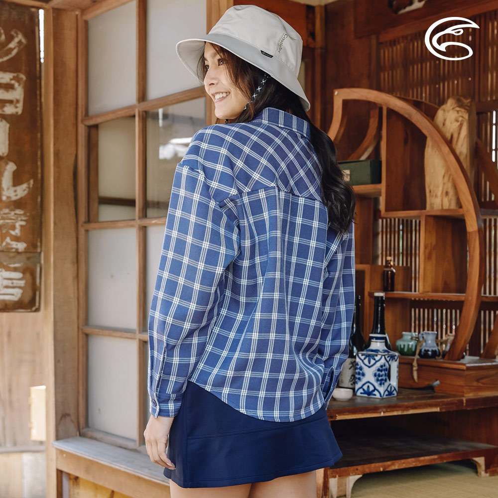ADISI 女透氣快乾寬版格紋長袖襯衫AL2321078 (M-XL) 牛仔藍|保暖 吸濕 快乾 透氣 棉感