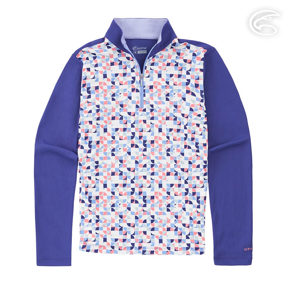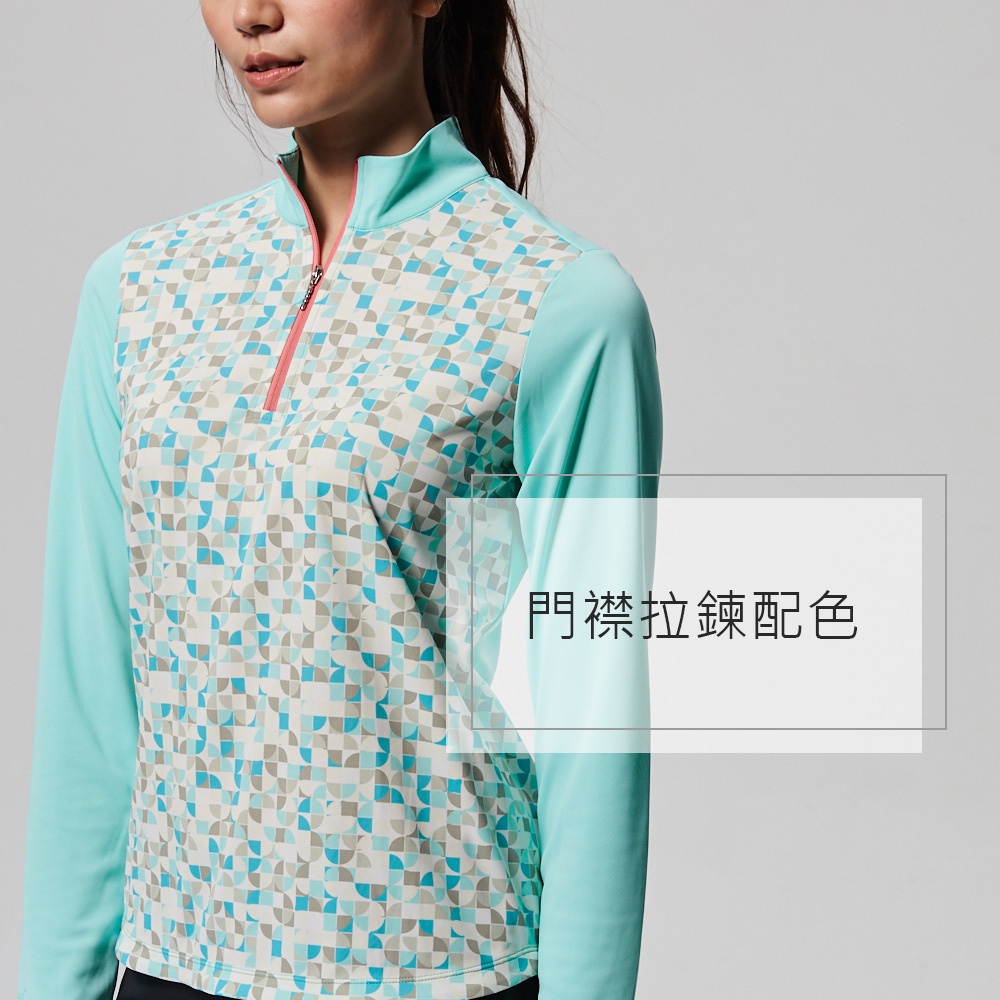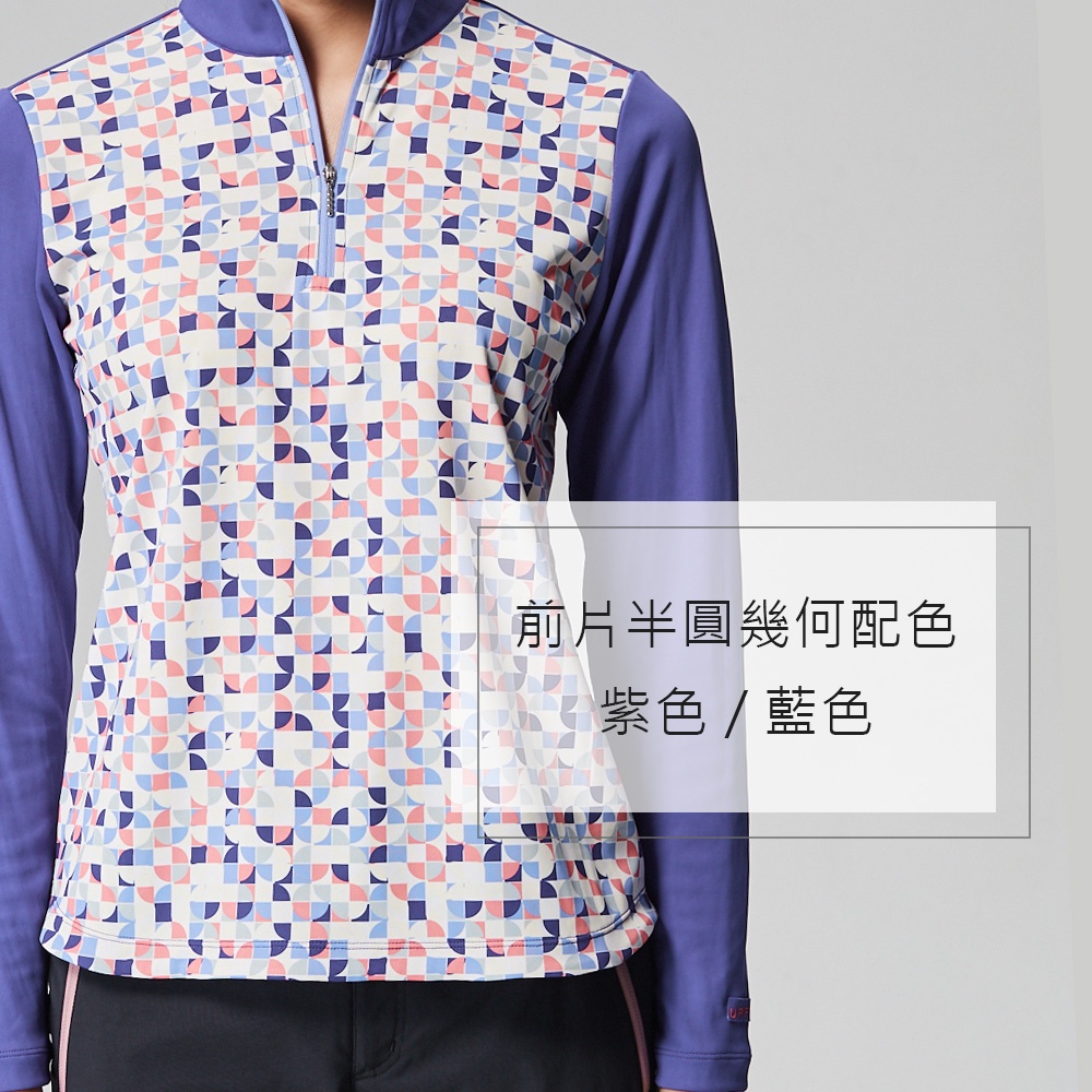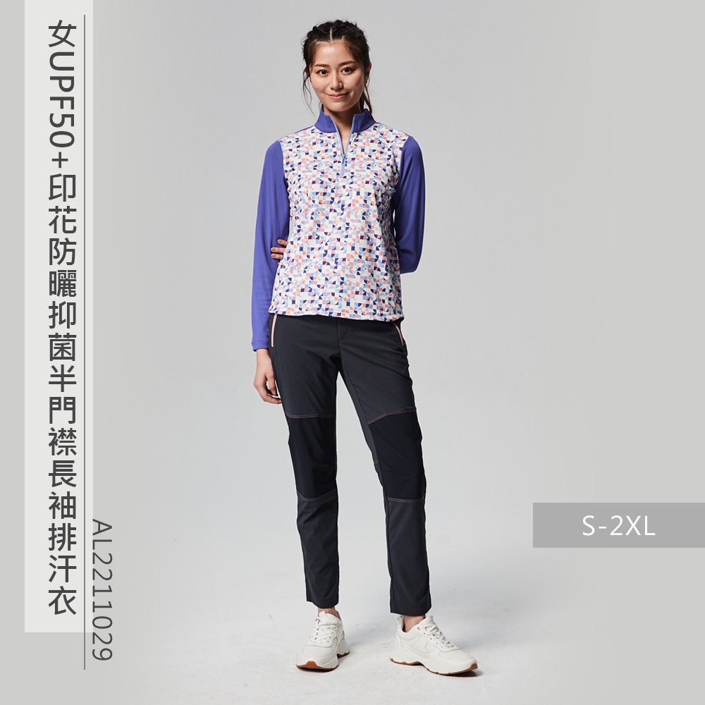 ADISI 女UPF50+印花防曬抑菌半門襟長袖排汗衣AL2211029 紫半圓幾何|吸排 彈性 抗紫外線 抗菌 防臭