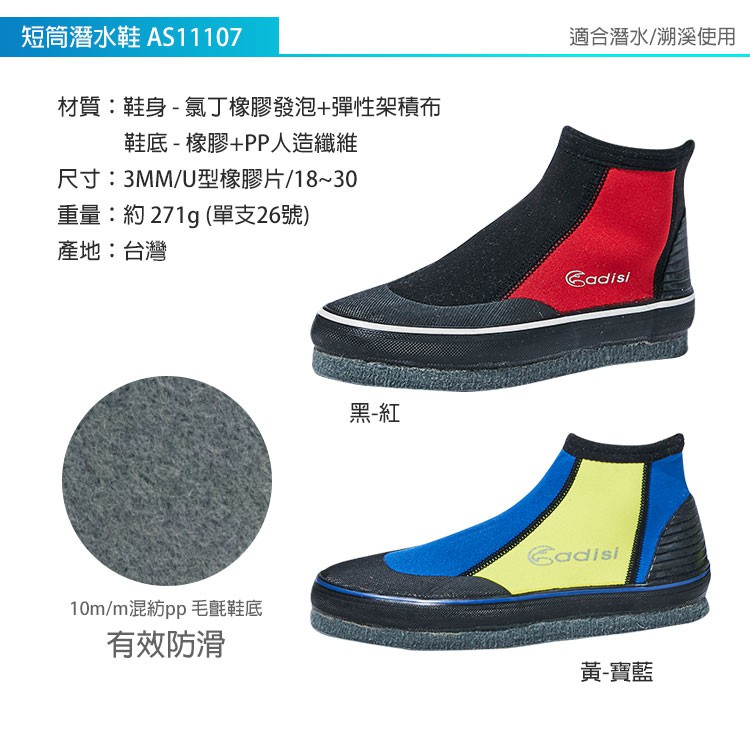 ADISI 短筒潛水鞋 AS11107【黃-寶藍】 / 溯溪鞋 浮潛 膠鞋
