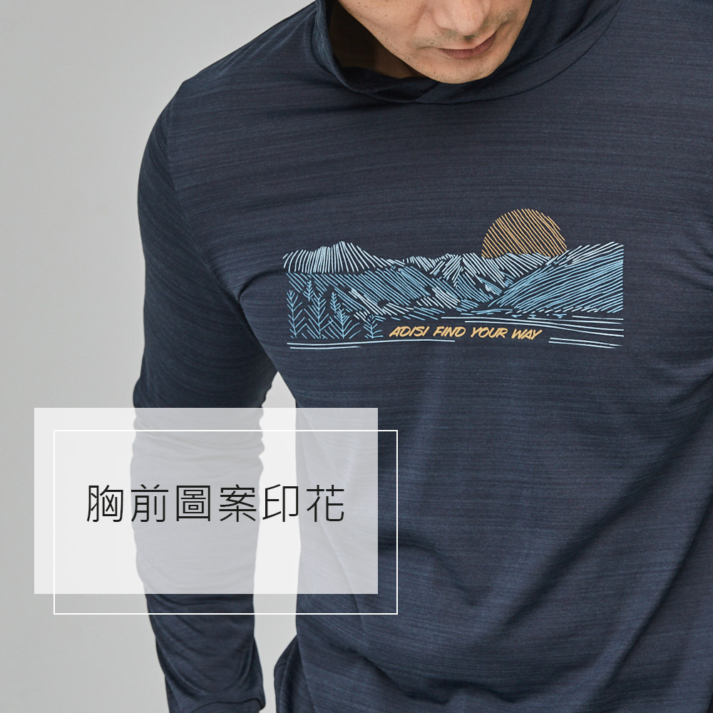 ADISI 男輕薄棉感快乾連帽長袖圖T AL2311122 (S-2XL) 雙色灰藍|輕量 吸濕排汗