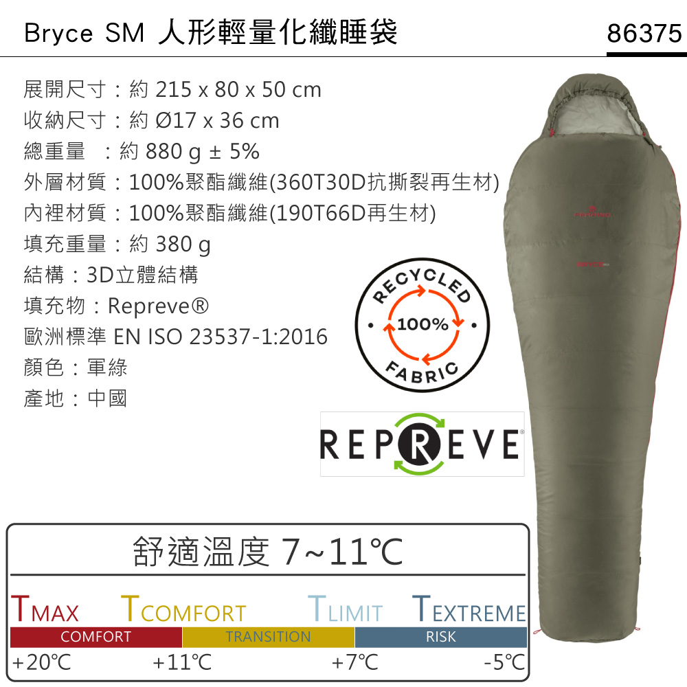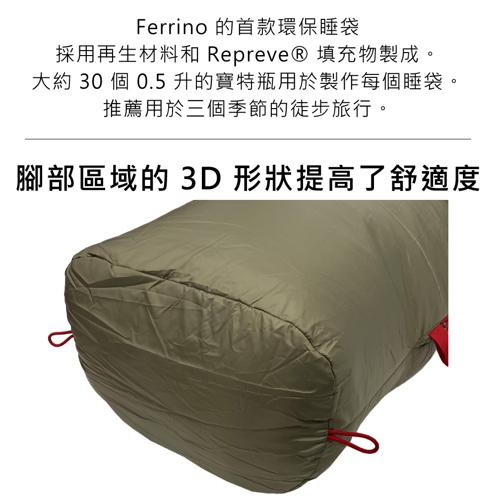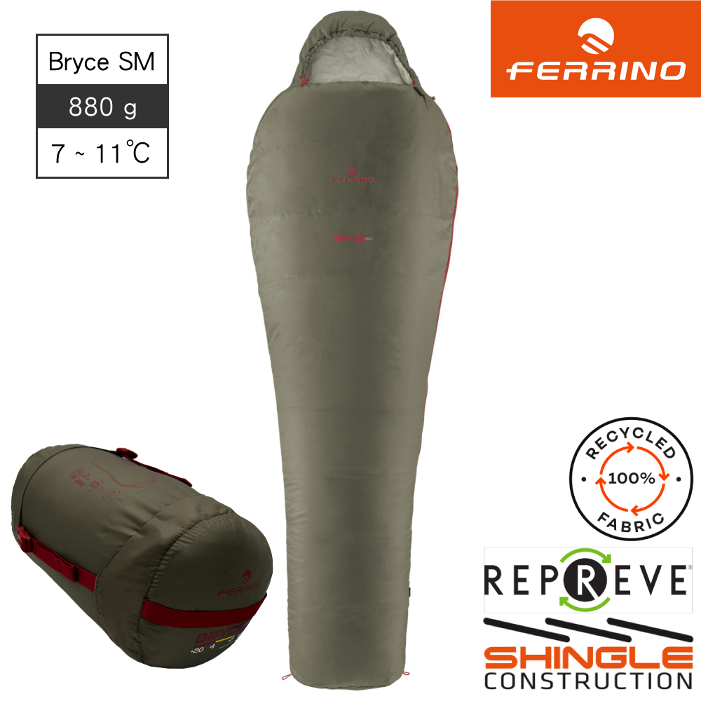 Ferrino Bryce SM 人形輕量化纖睡袋【軍綠】86375/ 露營睡袋 登山睡袋