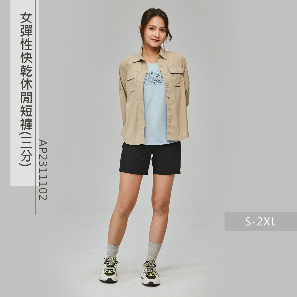 ADISI 女彈性快乾休閒短褲(三分) AP2311102 (S-2XL) 石墨黑|四面彈 輕薄透氣 速乾 吸濕排汗