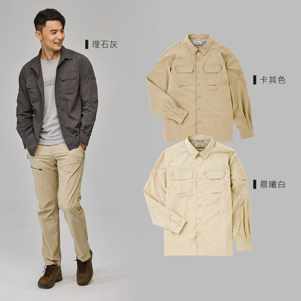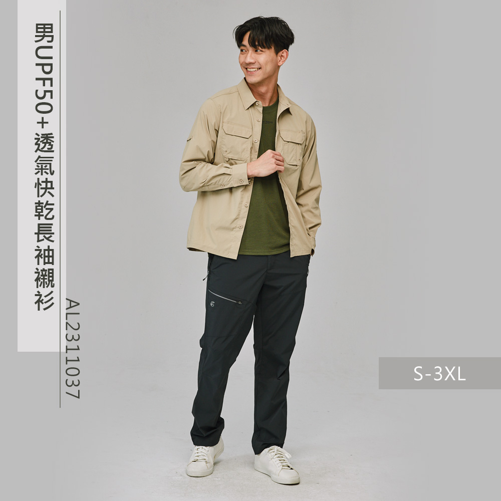 ADISI 男UPF50+透氣快乾長袖襯衫AL2311037 (S-2XL) 卡其色|防曬 抗UV 透氣 吸濕排汗 快乾