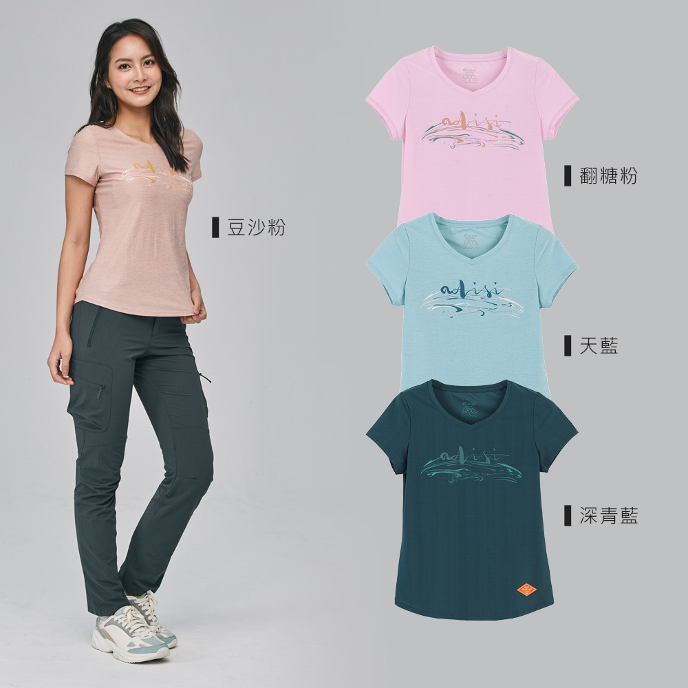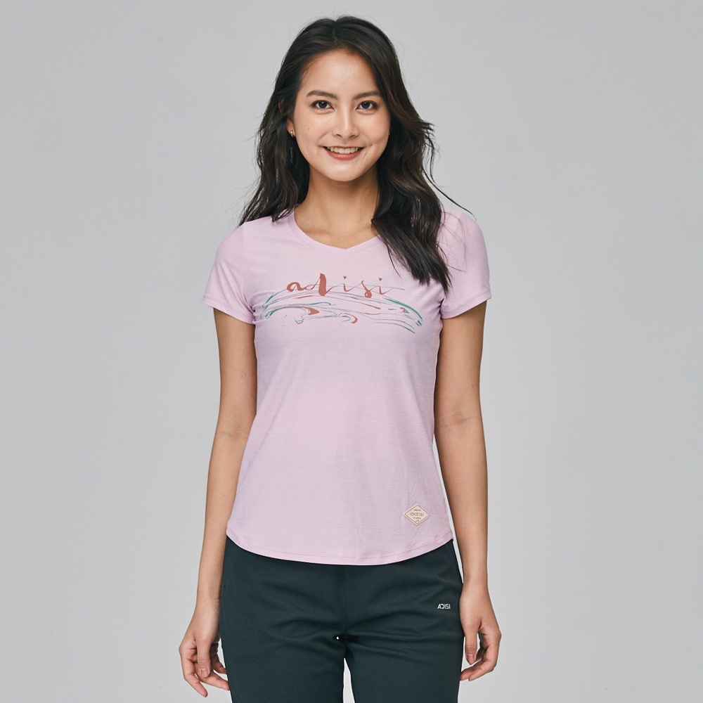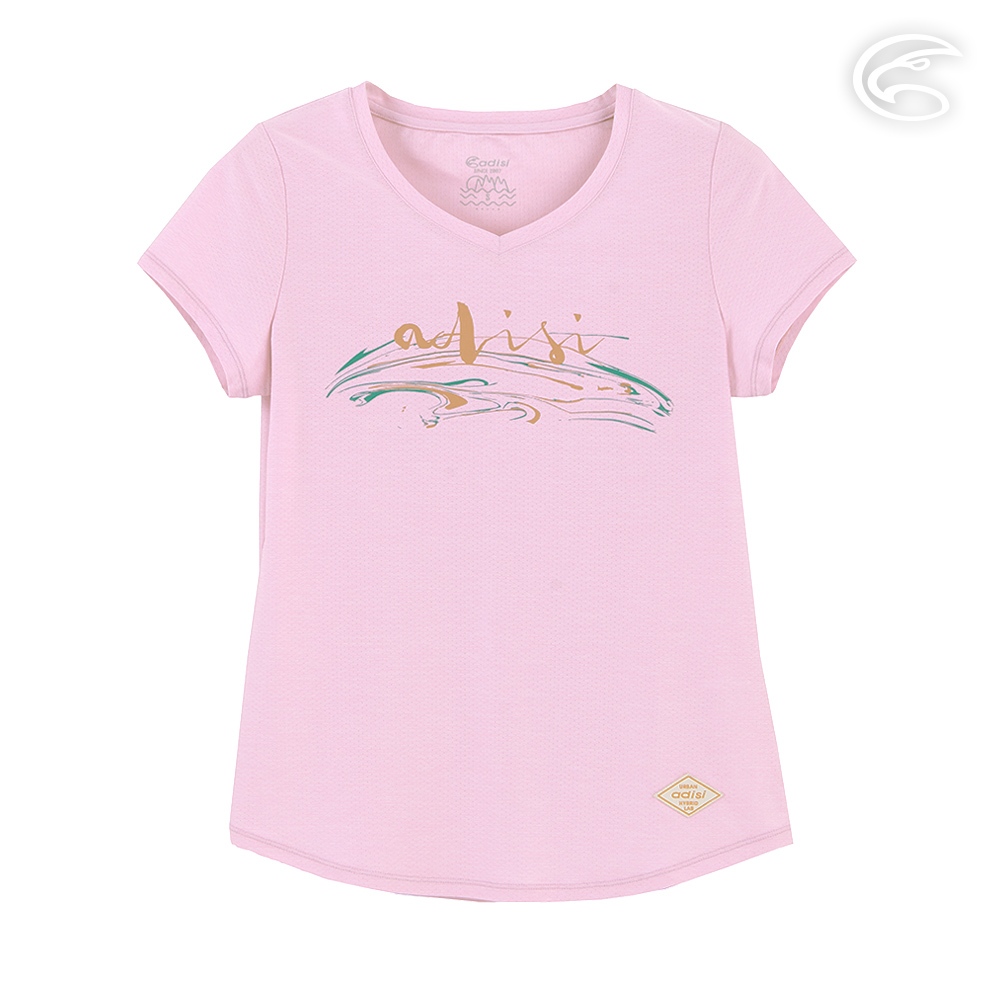ADISI 女浪花洞洞短袖V領透氣圖T AL2311016 (S-2XL) 翻糖粉|輕量 吸濕排汗 快乾 排汗衣