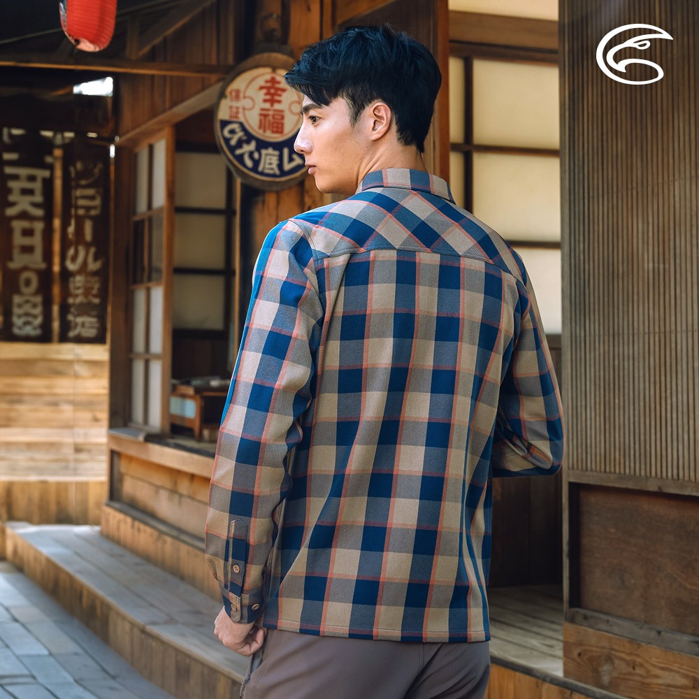ADISI 男透氣快乾休閒格紋長袖襯衫AL2321075 (S-3XL) 深藍/卡其|保暖 吸濕 快乾 透氣 棉感