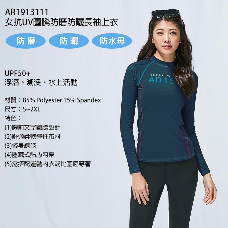 ADISI 女抗UV圖騰防磨防曬長袖上衣 AR1913111 (防曬褲 防磨褲 水母褲 緊身褲 溯溪 浮潛 衝浪)