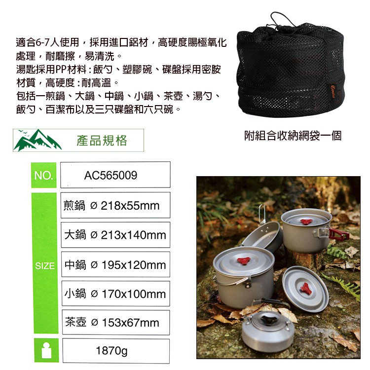 ADISI 便攜雙柄鋁套鍋組 AC565009 【6~7人適用 】