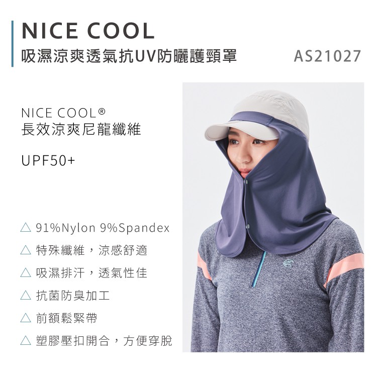 ADISI NICECOOL 吸濕涼爽透氣抗UV防曬護頸罩 【繡球紫】 UPF50+ 涼感 防曬 AS21027