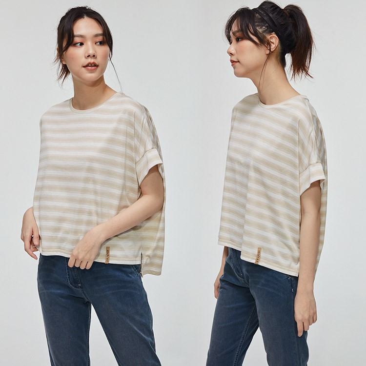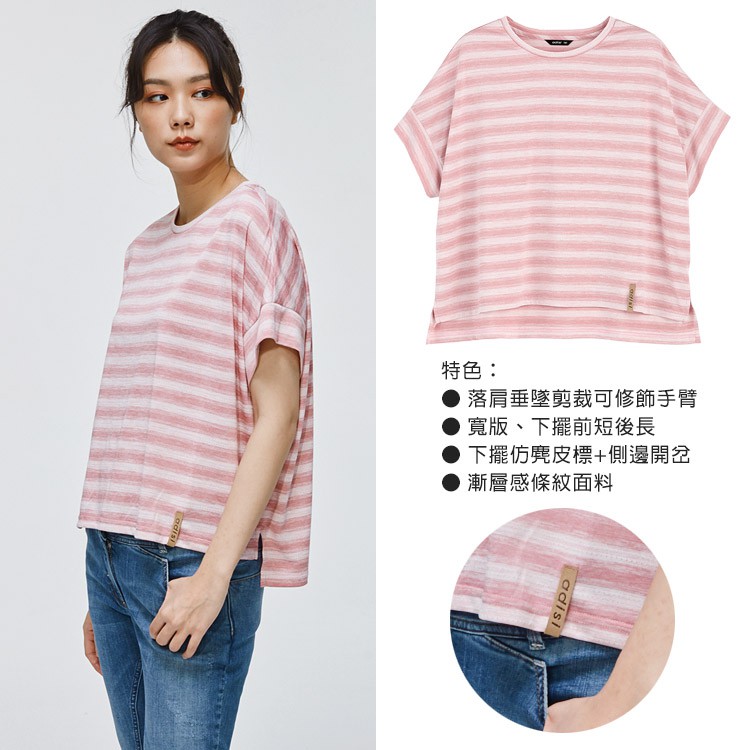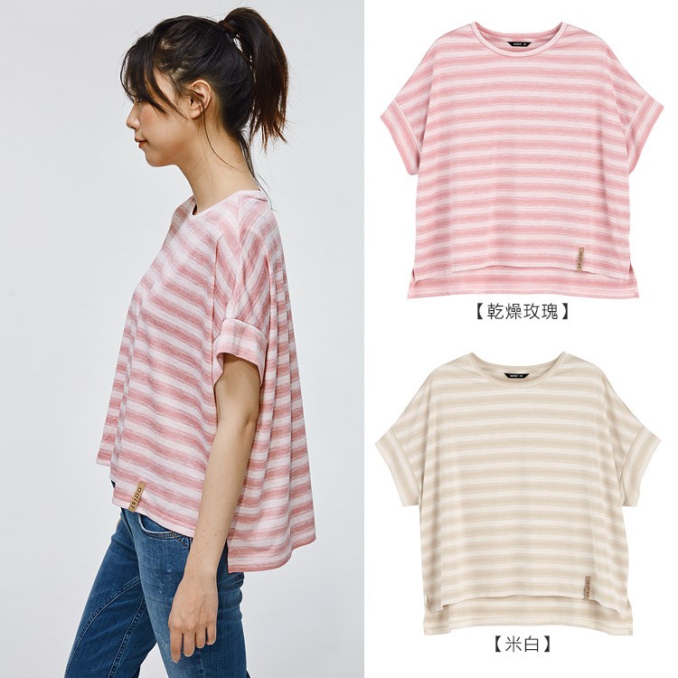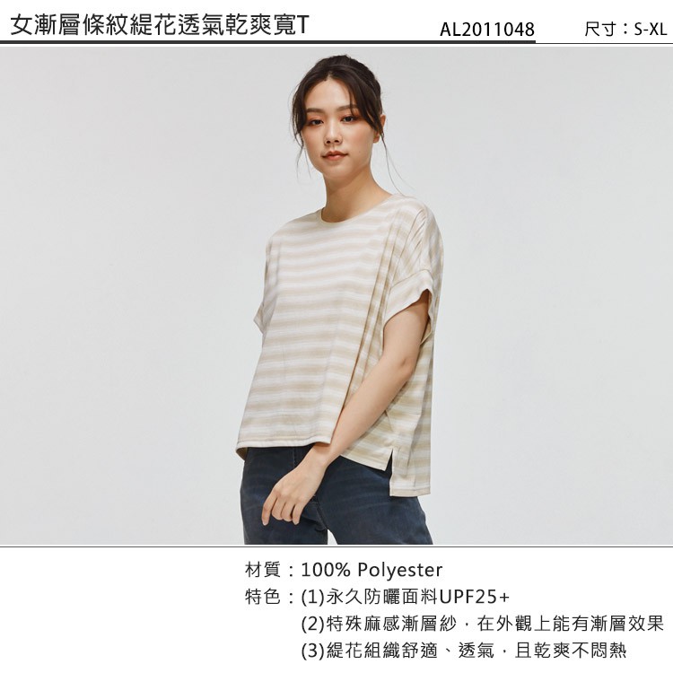 ADISI 女漸層條紋緹花透氣乾爽寬T AL2011048 (S-XL)【乾燥玫瑰】