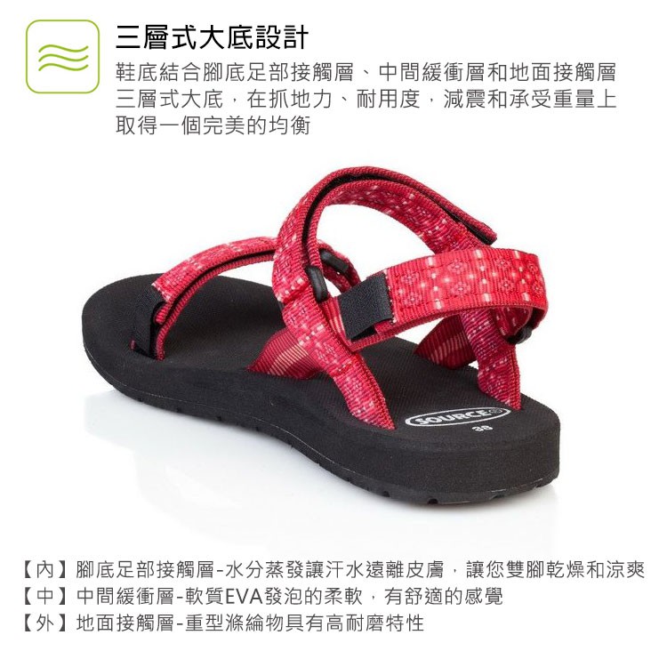 SOURCE 女 健走型運動涼鞋Classic 10101240【紅圖騰】織帶 輕量 快乾 抑菌