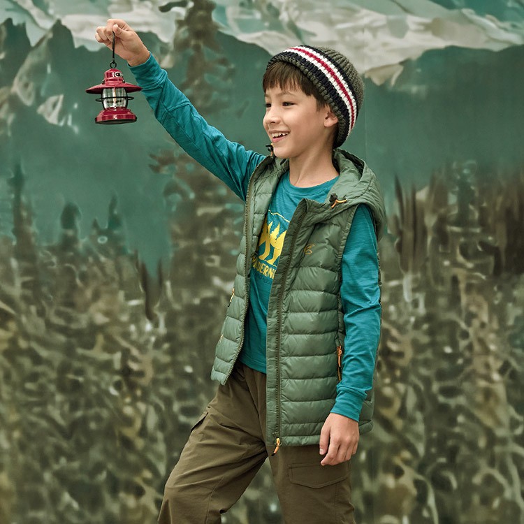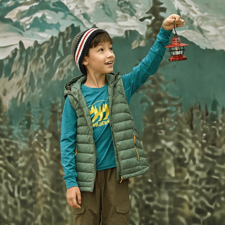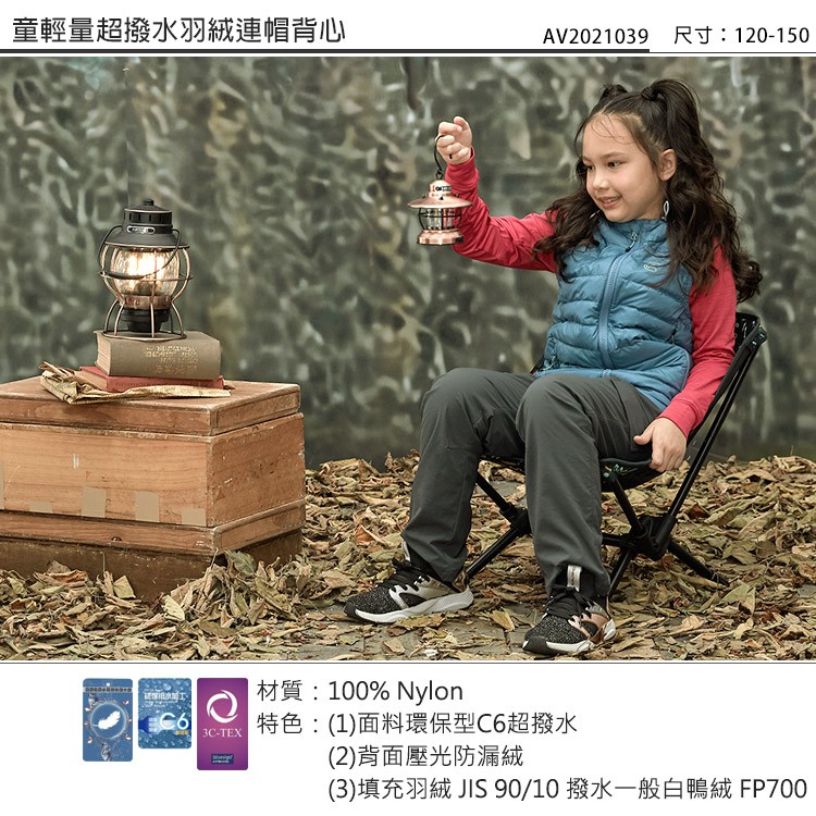 ADISI 童輕量超撥水羽絨連帽背心 【柏林藍】 撥水白鴨絨 JIS 90/10 FP700 AV2021039