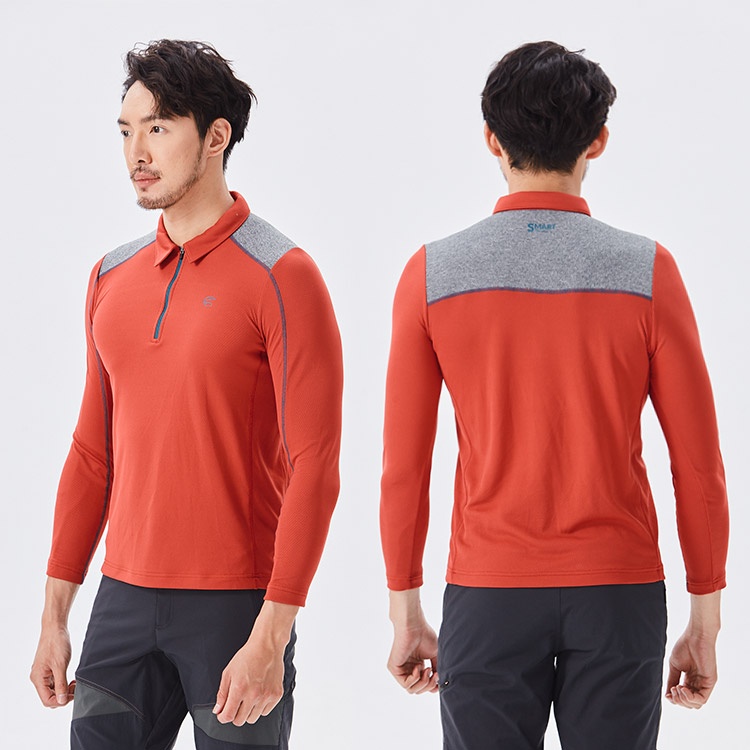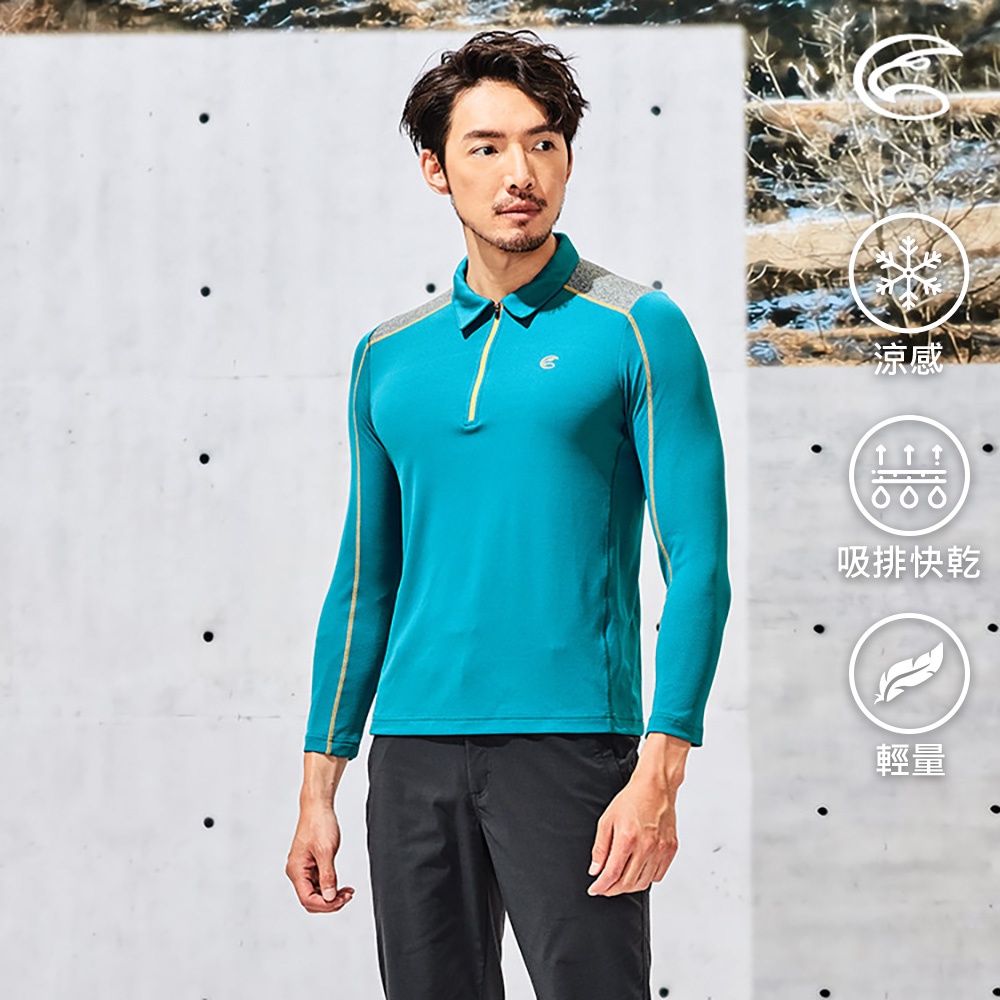 ADISI 男半門襟翻領涼感智能纖維速乾長袖上衣AL2111137 馬賽克藍|吸濕排汗 快乾 單向導濕 涼感 排汗衣