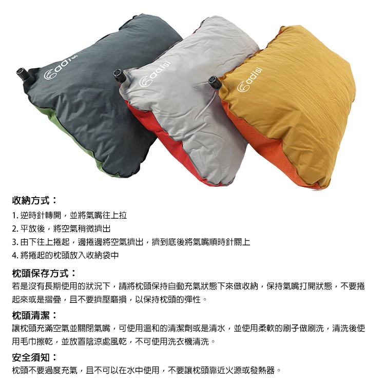 ADISI 不規則型自動充氣枕頭 PI-103R 顏色隨機出貨 城市綠洲