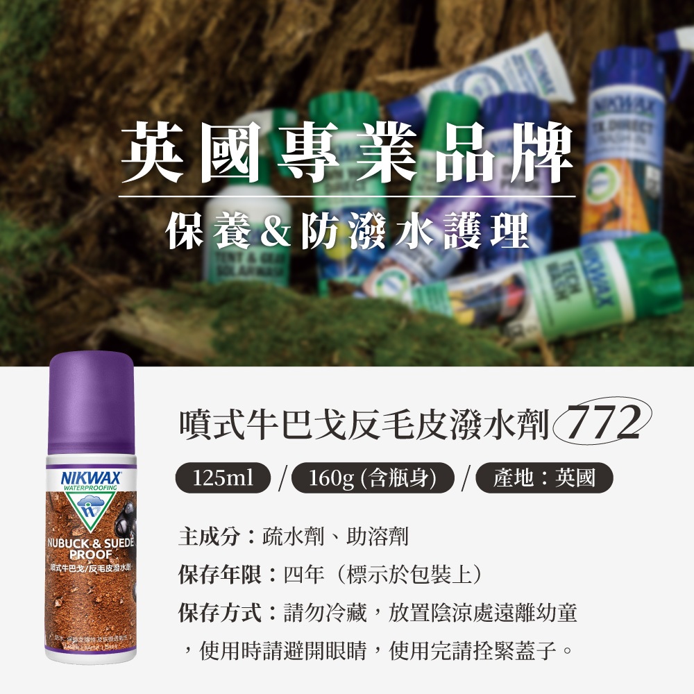 Nikwax 噴式牛巴戈/反毛皮潑水劑 【125ml】 772 |適用於絨面、麂皮、牛巴戈皮革類登山鞋 城市綠洲