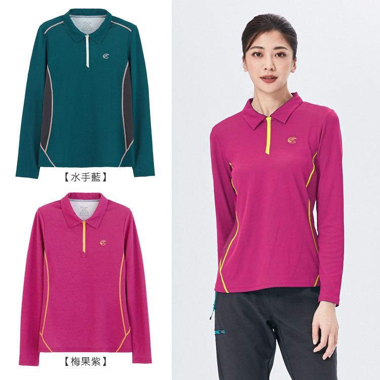 ADISI 女半門襟智能纖維超輕速乾長袖POLO衫 【梅果紫】吸濕排汗 保暖 中層衣 內搭 穿搭 AL2021042
