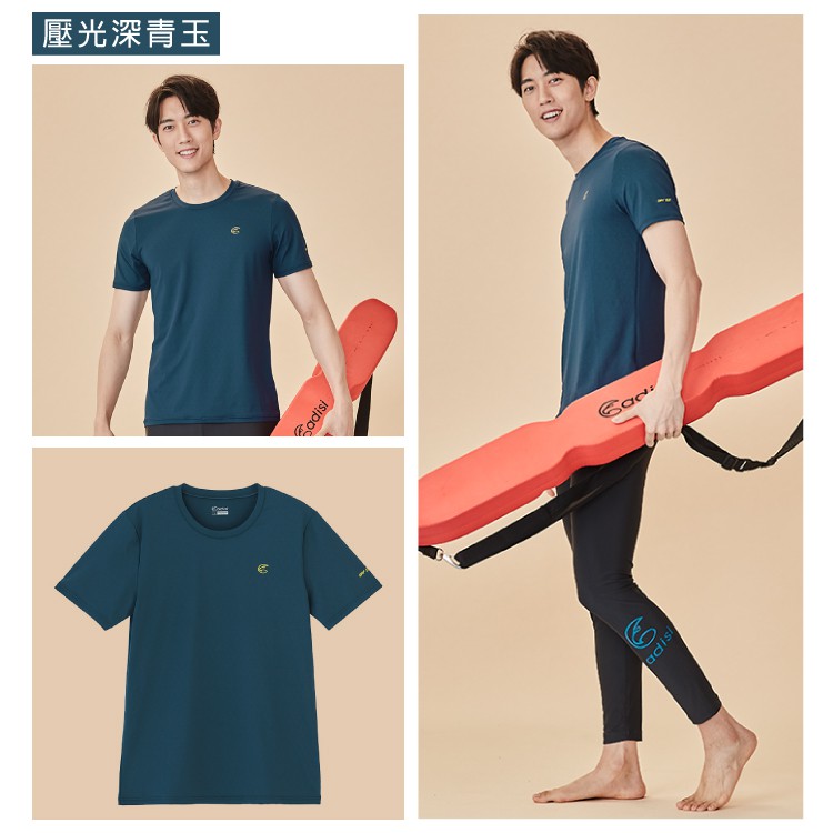 ADISI 男 抗UV防磨防曬短袖上衣(舒適版) AR2113073 壓光深青玉|防磨衣 水母衣 溯溪 浮潛 衝浪 泳衣