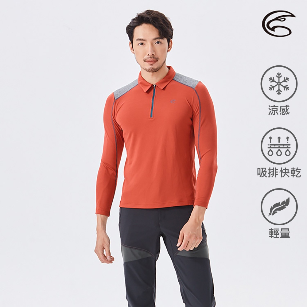 ADISI 男半門襟翻領涼感智能纖維速乾長袖上衣AL2111137 磚紅|吸濕排汗 快乾 單向導濕 涼感 排汗衣