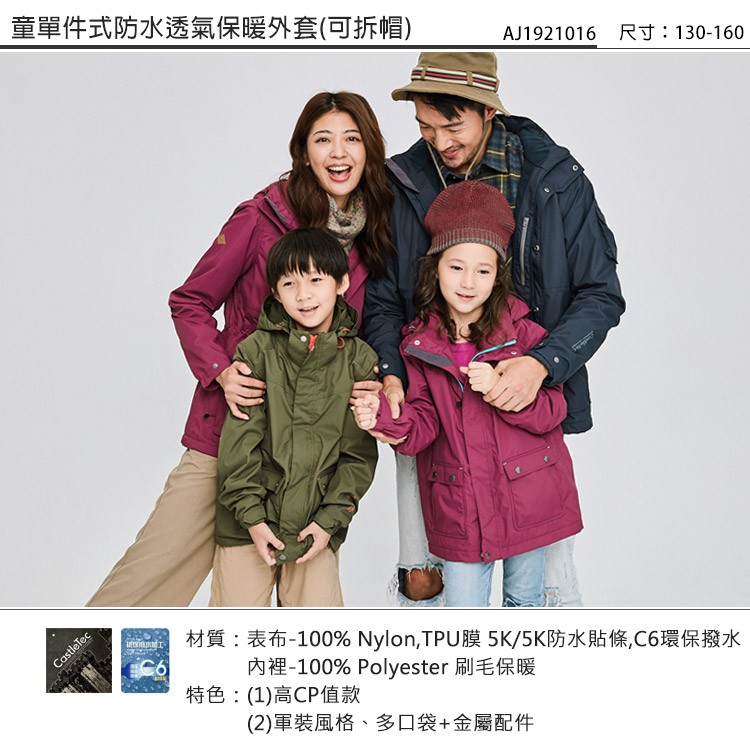 ADISI 童單件式防水透氣保暖外套(可拆帽) 【紫薰酒紅 / 130-160】 AJ1921016
