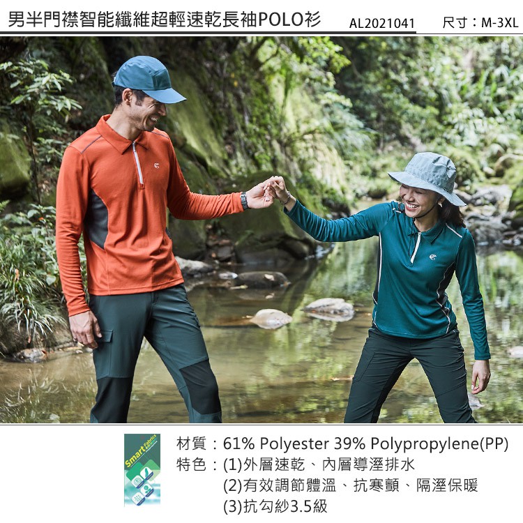 ADISI 男半門襟智能纖維超輕速乾長袖POLO衫AL2021041【水手藍】(M-2XL) PP紗 導溼快乾 登山排汗