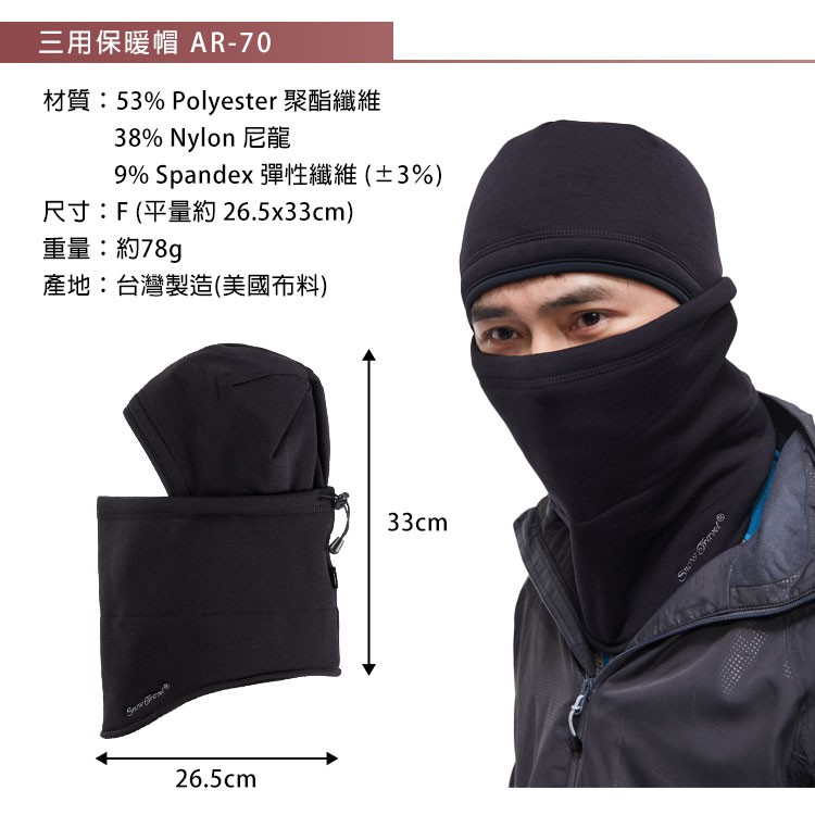 Snow Travel 三用保暖帽AR-70 黑色/Free Size