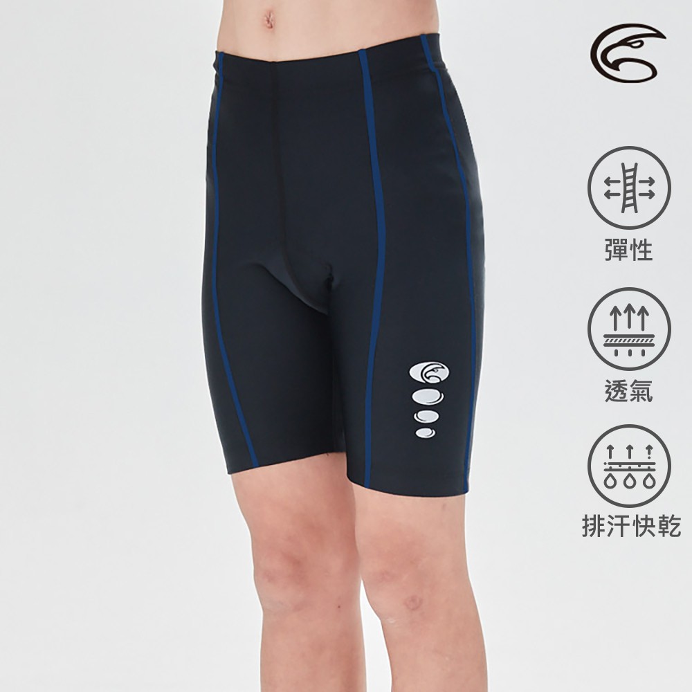ADISI 青少年短自行車褲AP2113064 黑色/藍色線 / 彈性 快乾 車褲 單車服飾