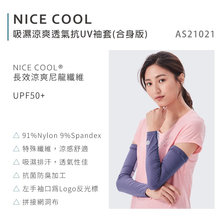 ADISI NICECOOL 吸濕涼爽透氣抗UV袖套 (合身版) 【珍珠粉】 UPF50+ 涼感 防曬 AS21021